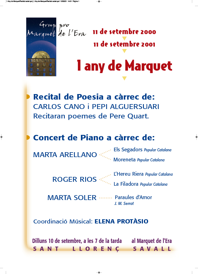 Activitats commemoratives del primer any de feina del Grup Pro Marquet de l’Era.