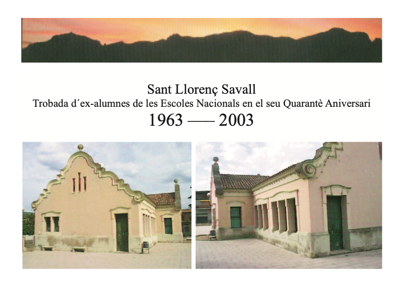Calendari editat en commemoració de la trobada d’ex-alumnes de les Escoles Nacionals en el seu 40è aniversari (1963-2003).