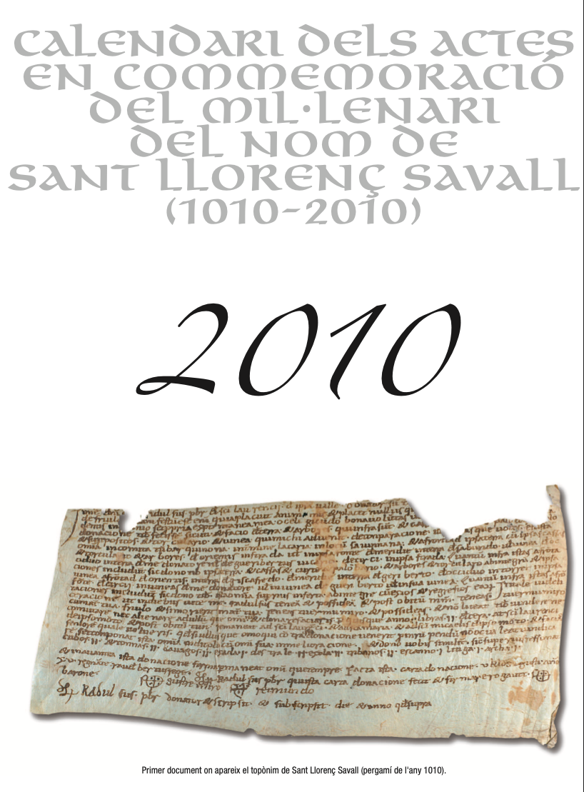 Calendari dels actes celebrats en la commemoració del mil·lenari del nom de Sant Llorenç Savall (1010-2010).