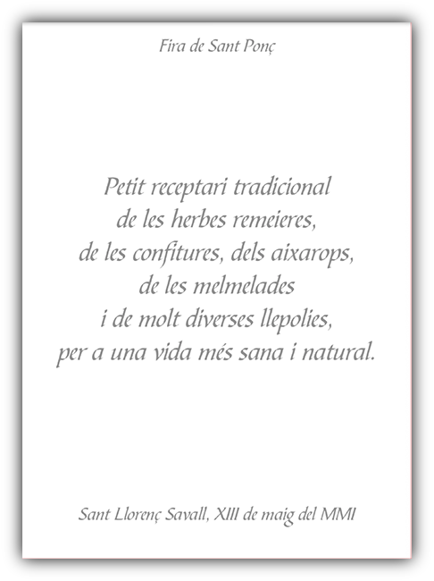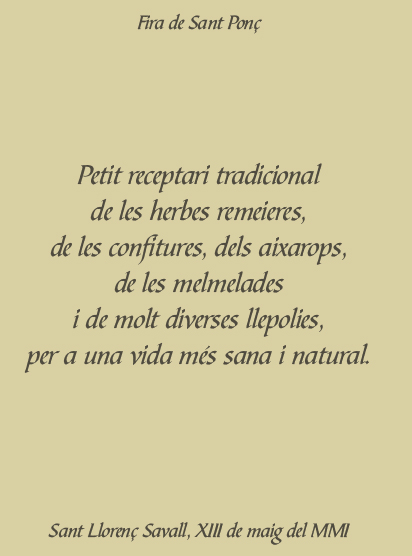 Llibre de receptes de cuina editat pel Grup pro Marquet de l’Era per a vestir i presentar la I Fira de Sant Ponç.