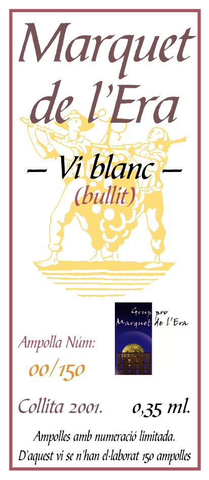 Etiqueta de vi “Marquet de l’Era”. Ampolles limitades (80 ampolles).